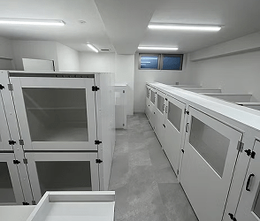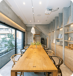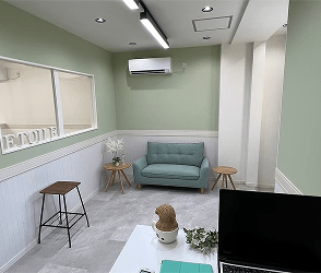 こちらはペット関連の店舗の施工事例です。受付部分が狭く感じないように、窓を作り奥まで見えるように設計しています。クロス・床はペットのお店ということもあり、柔らかさ・暖かさ・清潔感。この3つをテーマにデザインしています。